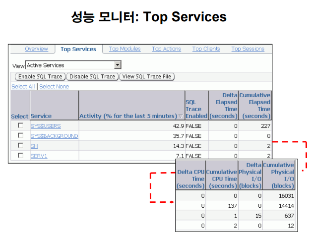 예 : vsesstat, v$service_stats