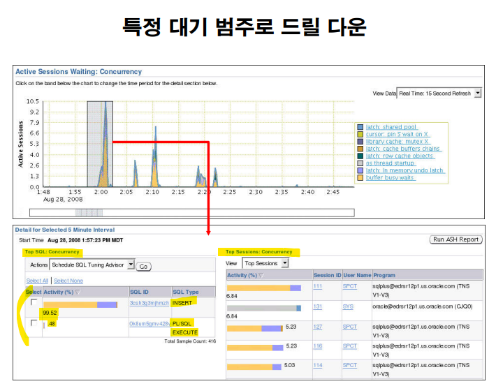 대기 이벤트 : 오라클이 느린 이유를 알 수 있음