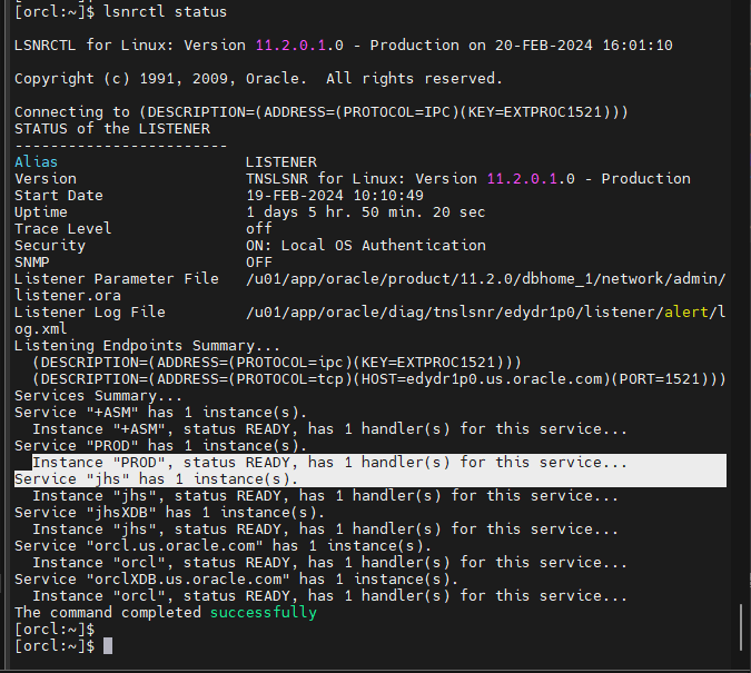 #1. 리스너의 상태를 확인해서 orcl 과 prod 의 서비스 상태 확인