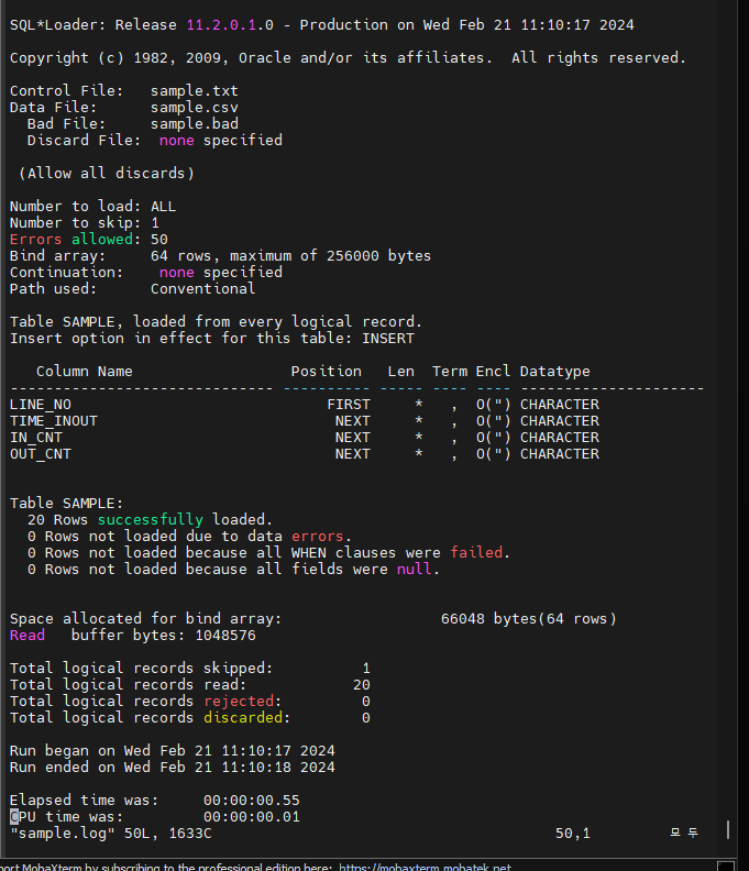 SQL*Loader: Release 11.2.0.1.0 - Production on Wed Feb 21 11:10:17 2024