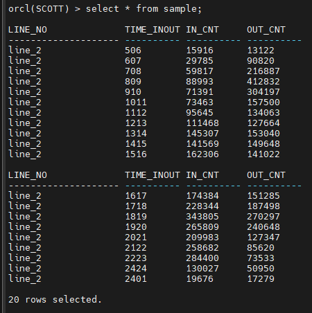 #2. orcl 의 scott 유져에서 sample 테이블을 생성합니다.