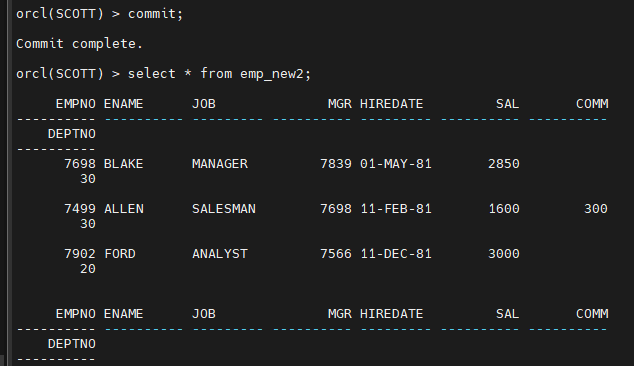 #2. emp 테이블과 구조가 똑같은 emp_new2 라는 테이블을 생성합니다.