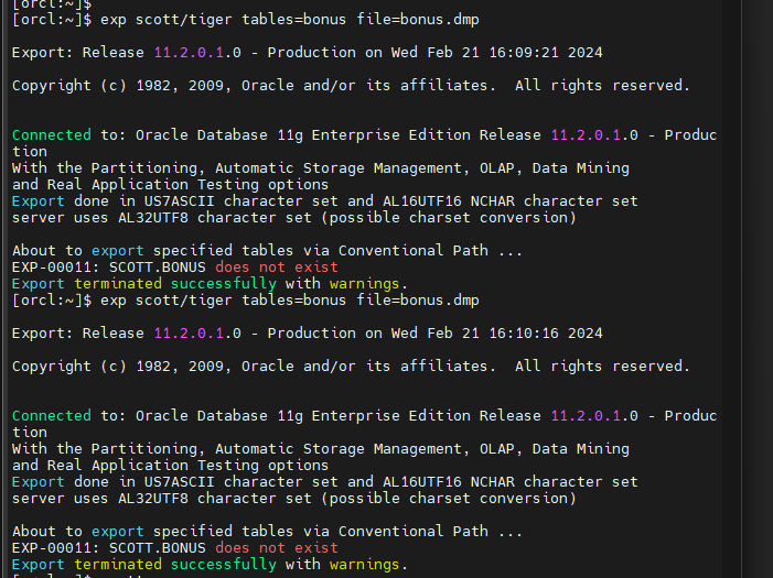 #1. orcl 쪽의 scott 계정의 모든 테이블들을 export