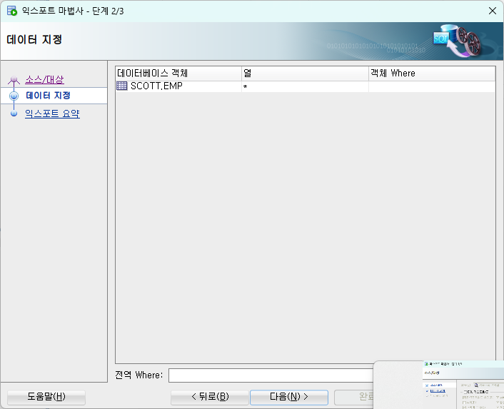※ 현업에서는 위의 작업을 하면 scott.dmp 의 파일이 굉장히 크다