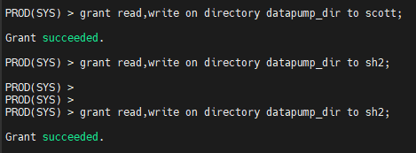 PROD(SYS) > grant read,write on directory datapump_dir to sh2;