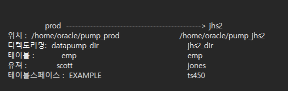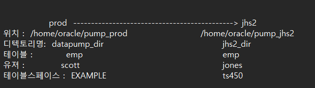 문제1. prod 쪽의 dept 테이블의 pump 파일인 dept_pump.dmp 를 jhs2 에 임폴트 펌프 하시오 !!