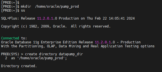 [PROD:~]$ mkdir /home/oracle/pump_prod