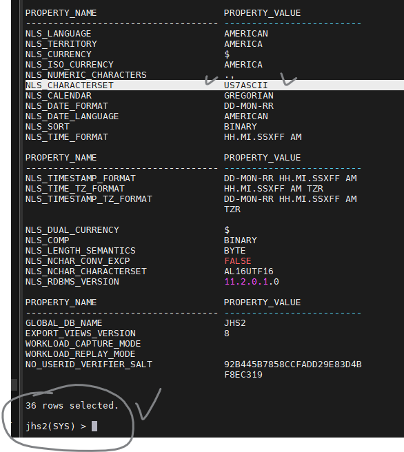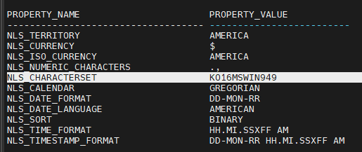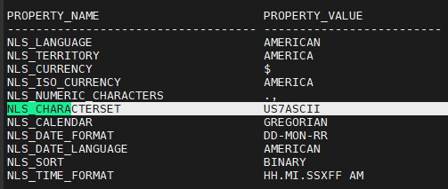 NLS_CHARACTERSET US7ASCII