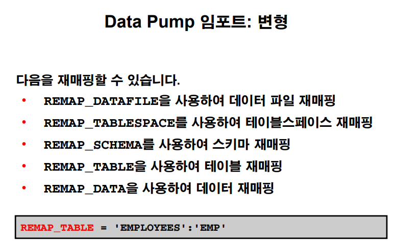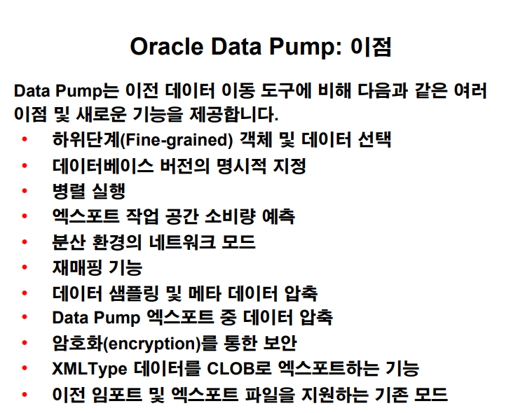 data pump 는 export / import 의 더 업그레이드 된 버전입니다.
