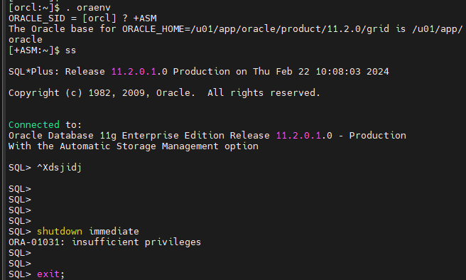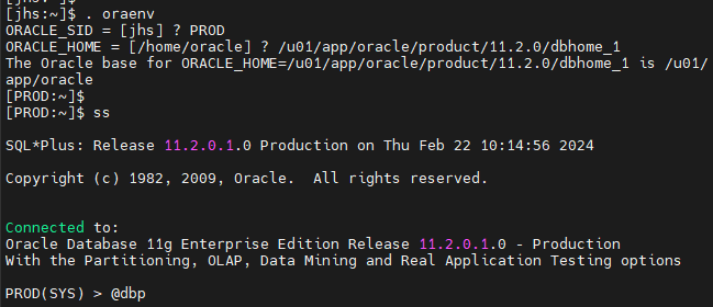 SQL*Plus: Release 11.2.0.1.0 Production on Thu Feb 22 10:16:13 2024