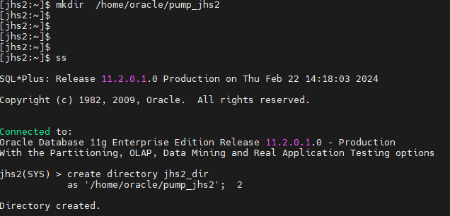 $ mkdir /home/oracle/pump_jhs2