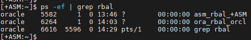 oracle 6616 5596 0 14:29 pts/1 00:00:00 grep rbal