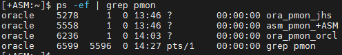 oracle 5278 1 0 13:46 ? 00:00:00 ora_pmon_jhs