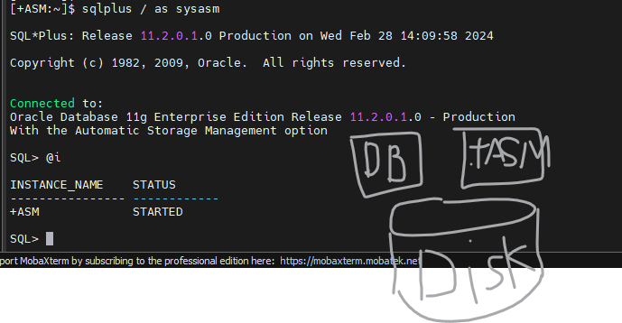 asm 으로 디스크를 관리한다고 한다면 위와 같이 asmcmd 명령어로 접속해야