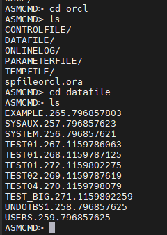 문제4. 테이블 스페이스를 drop 하면 ASM 에 있는 관련된 datafile 이 같이 삭제되는지 확인하시오