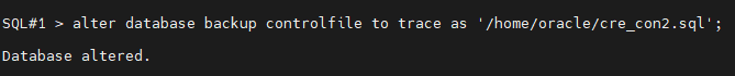 SQL#1 > alter database backup controlfile to trace as '/home/oracle/cre_con2.sql';