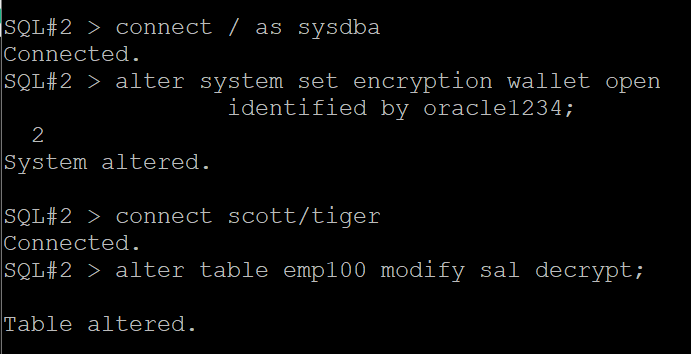 SQL#2> alter table emp100 modify sal decrypt;