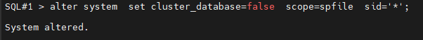SQL#1> alter system set cluster_database=false scope=spfile sid='*';