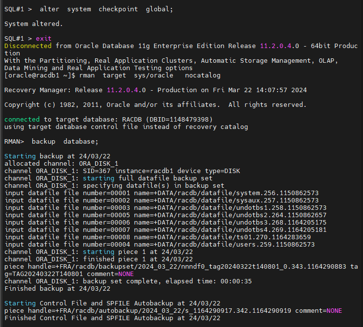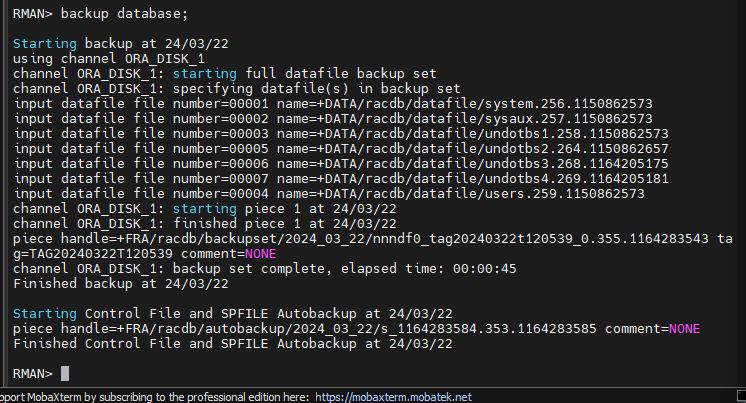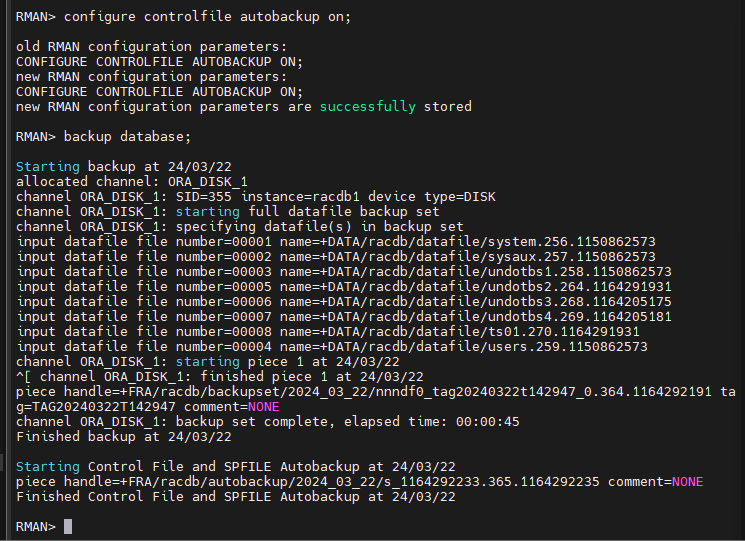 RMAN > backup database;