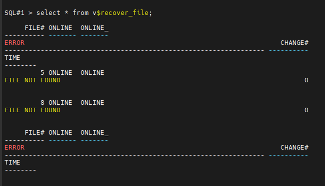 select * from v$recover_file; <--- 복구해야할 파일 리스트 조회