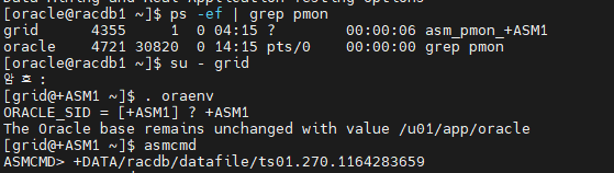 #5. grid 유져로 접속해서 asmcmd 로 접속합니다.