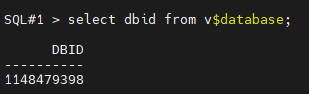 SQL#1 > select dbid from v$database;