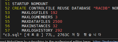 RAC 환경에서 controlfile 을 복구하려면 반드시 cluster_database 파라미터를 false 로