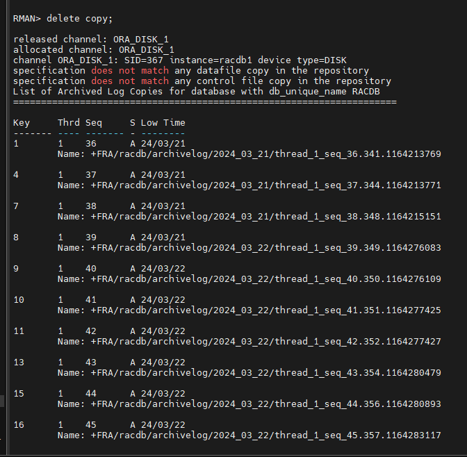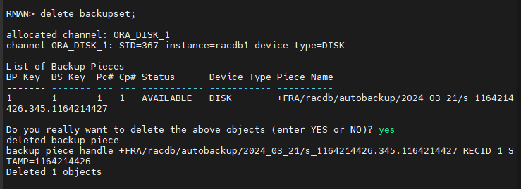 문제2. RMAN 으로 접속해서 기존 백업파일 지우기