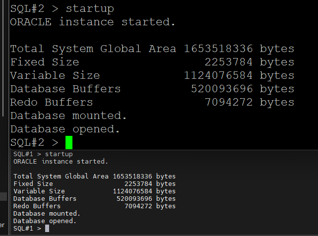 #7. 양쪽 인스턴스를 shutdown abort 를 내립니다.