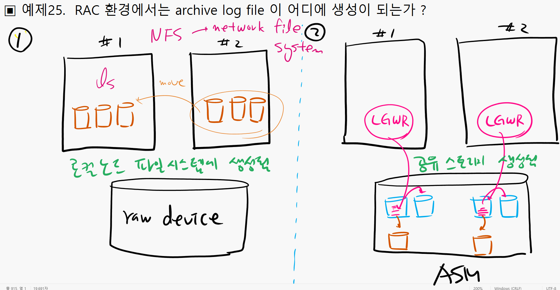 만약에 공유 스토리지가 raw device 면 아카이브 로그 파일은 로컬노드에 파일 시스템에 생성된다.