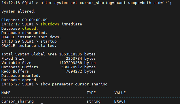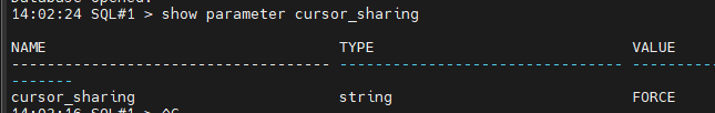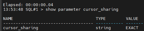 SQL#1 > select sql_text from v$sql where sql_text like '%cursor_sharing_exact%';
