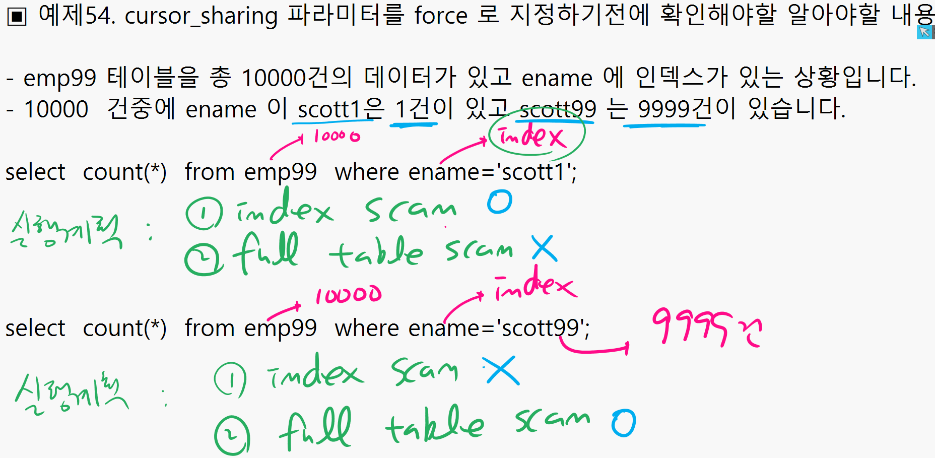 #4. cursor_sharing_exact 힌트를 사용해서 SQL을 실행합니다.