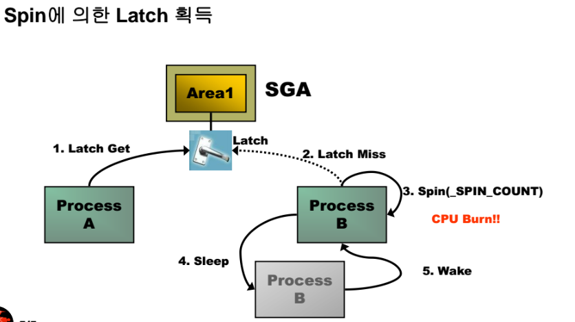 오라클 메모리를 사용하려면 반드시 latch 를 획득해야하고 latch 를 획득하지