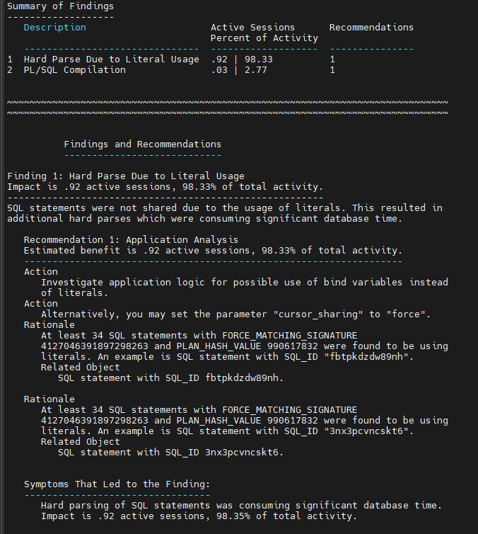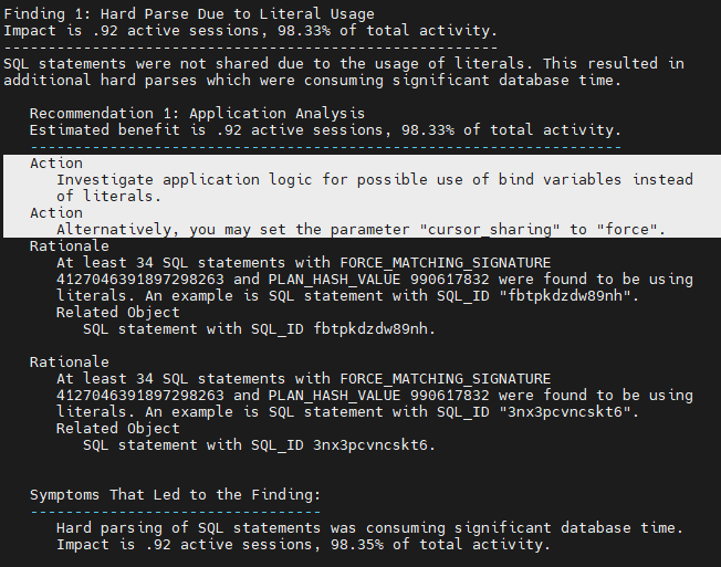 ADDM 레포트에 추천 해결방법은 SQL이 공유가 될 수 있도록