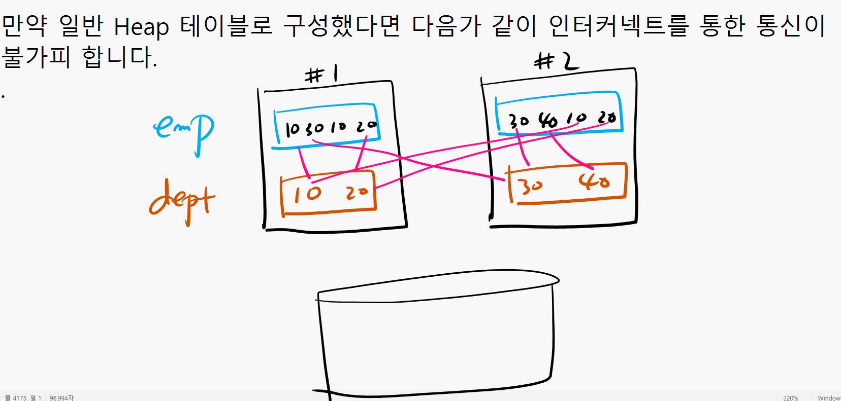 만약 일반 Heap 테이블로 구성했다면 다음과 같이 인터커넥트를 통한 통신이 불가피 하다