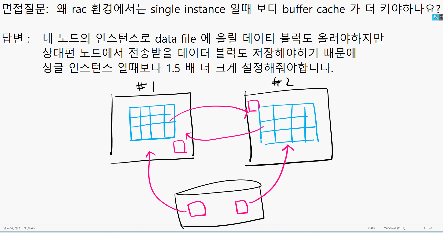 면접질문: 왜 rac 환경에서는 single instance 일때 보다 buffer cache 가 더 커야하나요?