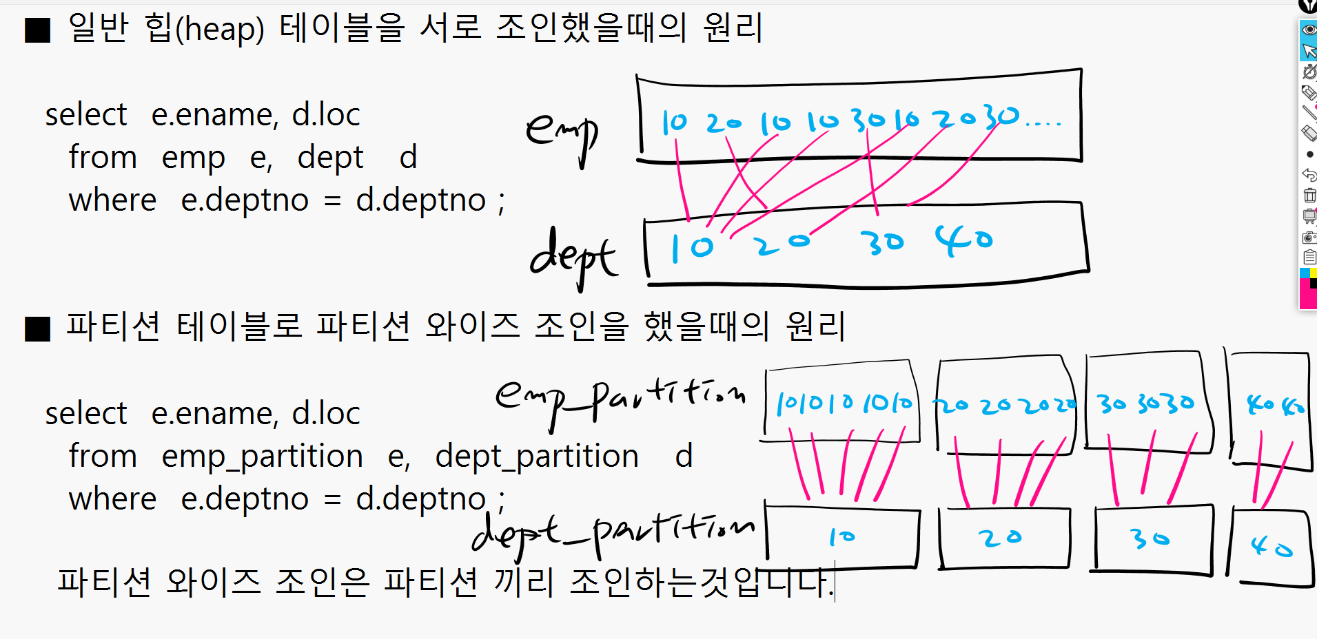 설명: 실행계획을 보면 파티션 와이즈 조인을 했습니다.