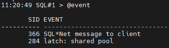 또 다른 터미널 창을 열어서 top 도 수행하고 다음과 같이 대기 이벤트도 조회합니다.