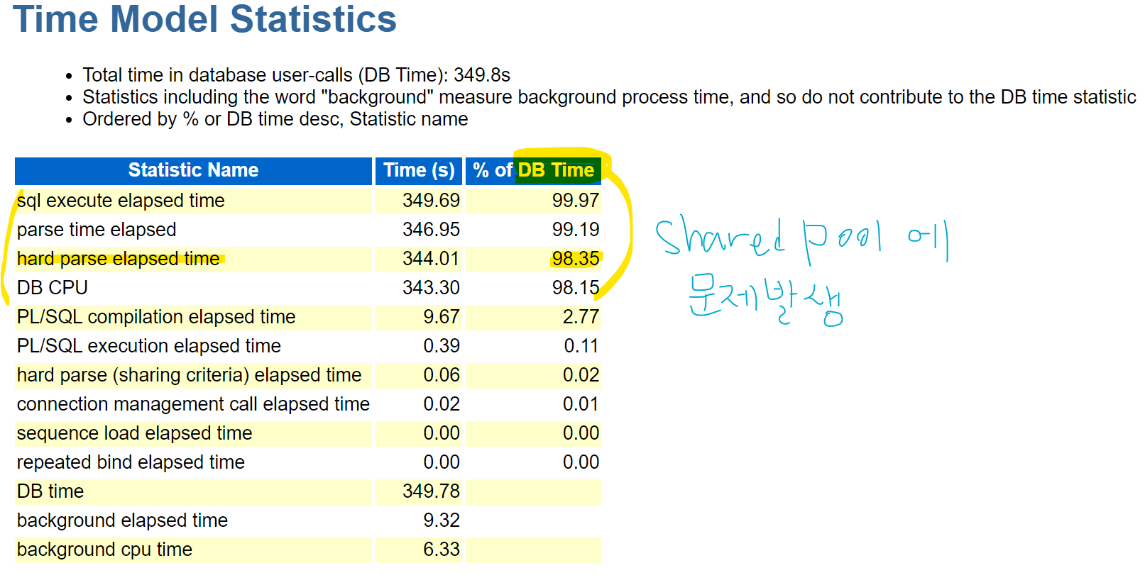 설명: 공유 풀안에 공유 되지 않은 sql이 가득차 있습니다.