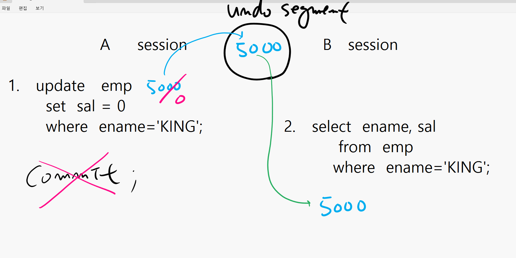 그래서 그 transaction 은 끝날때까지(commit할때) 그 undo segment 만 해야합니다.
