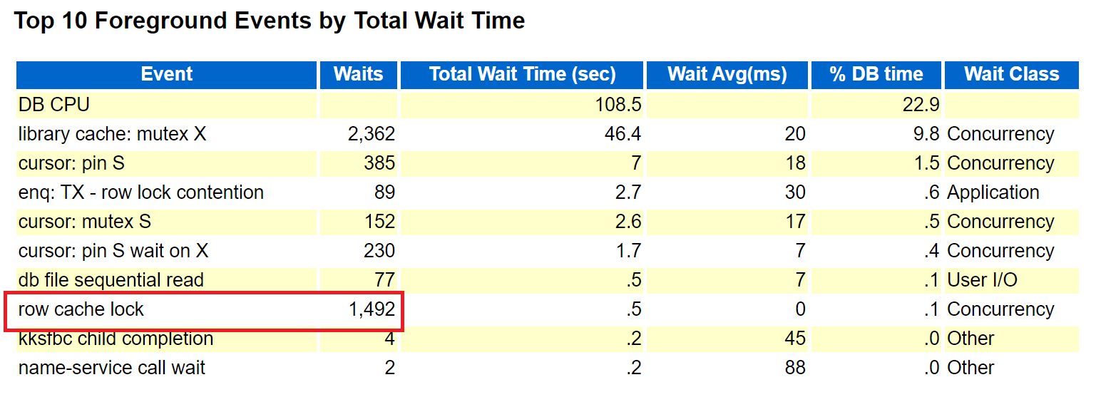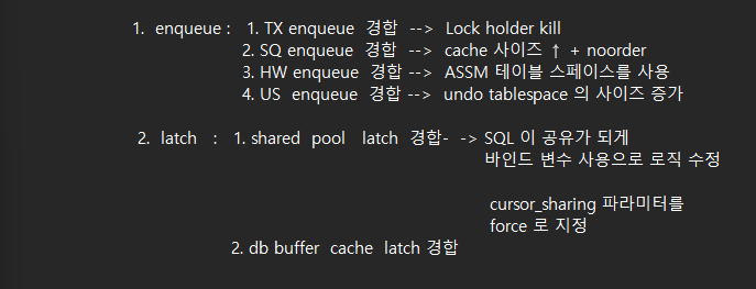 row cache lock 대기 이벤트가 library cache 에 관련된 대기 이벤트이다.