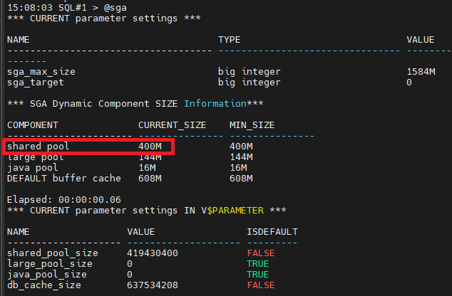 SQL#1 > alter system set shared_pool_size=400m scope=spfile sid='*';