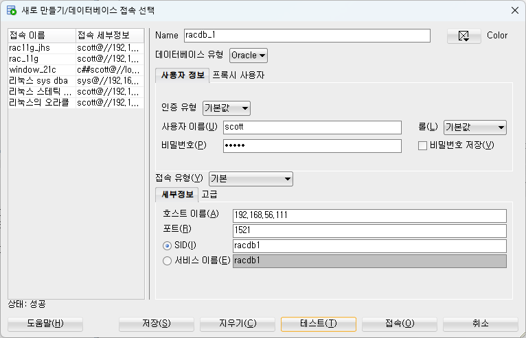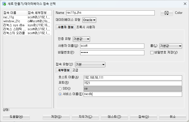 ■ 실습1. sqldeveloper 로 rac db 에 접속하기