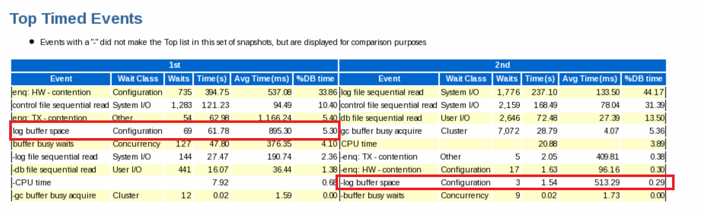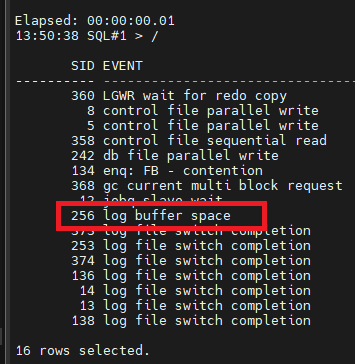 설명: log buffer space 대기 이벤트는 서버 프로세서가 리두 로그 버퍼에 데이터를
