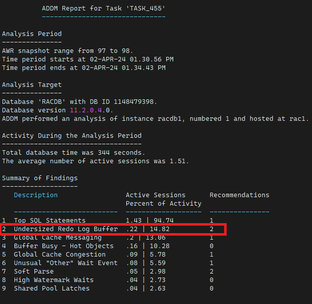 SQL#1 > @?/rdbms/admin/addmrpt.sql