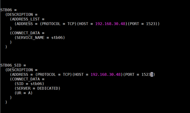 (ADDRESS = (PROTOCOL=TCP)(HOST=192.168.30.48)(PORT=1523))