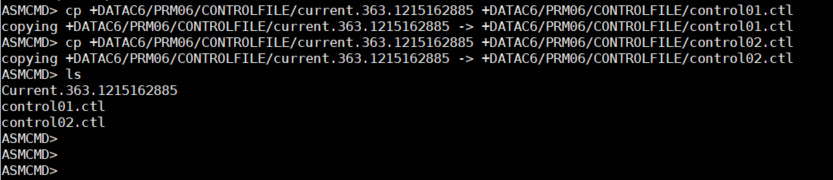 ASMCMD> cp +DATAC6/PRM06/CONTROLFILE/current.363.1215162885 +DATAC6/PRM06/CONTROLFILE/control02.ctl