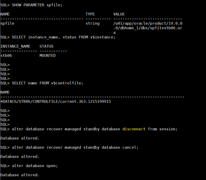 ALTER DATABASE OPEN;