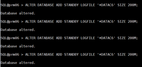 ALTER DATABASE ADD STANDBY LOGFILE '+DATAC6' SIZE 200M;