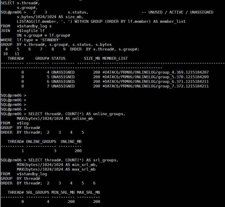 ORDER BY l.thread#, l.group#, lf.member;